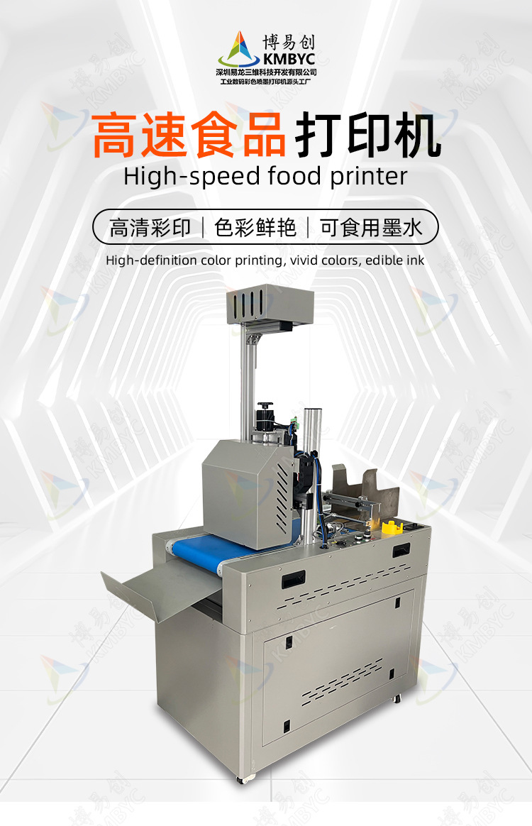產品介紹:博易創食品馬卡龍打印機采用惠普品牌噴頭。打印寬度為21.5cm,進料寬度為30cm。不需要制版就能一鍵完成打印。專用食品行業墨水。適合小批量食品印花