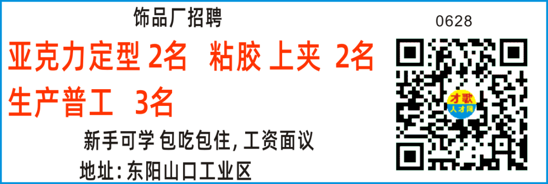 東陽山口飾品廠招聘打膠槍:20名熟05-29