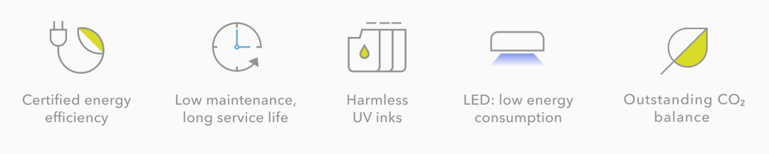 不僅如此,swissQprint始終認為,守護環境和為客戶創造最大價值是同等重要的,因此在綠色環保科技(Greentech)開發上,swissQprint亦做到了她們能做到的極致。這觸及到對環境守護,用戶友好以及其他能源消耗等多個方面。