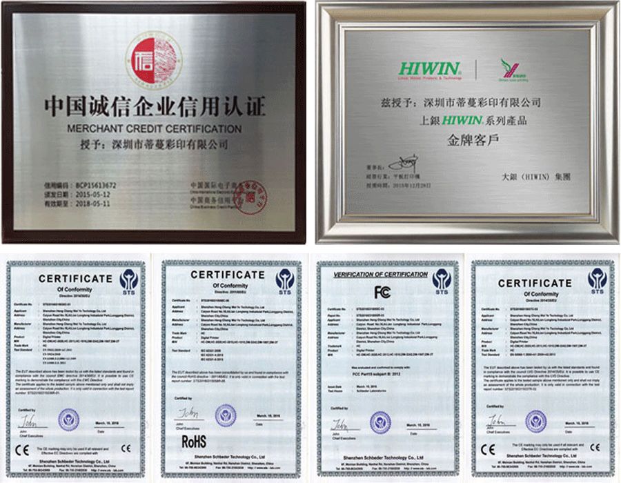 深圳蒂蔓彩印是一家開發,生產,營銷UV平板噴墨印花設備.日前在UV平板噴墨印花設備行業率先處理超細墨點等距波形擺列技術,一舉處理UV平板噴墨印花設備行業超精細藝術微噴打印質量,并成功申請技術專利。蒂蔓彩印采用東芝認證墨水,墨水經東芝廠家認證,不含有任何有損噴頭的成份,打印更流暢,噴頭壽命更長,墨水密度高,色域廣已經過ROHS,SGS認證標志。蒂蔓噴頭2年質保,設備終身守護。